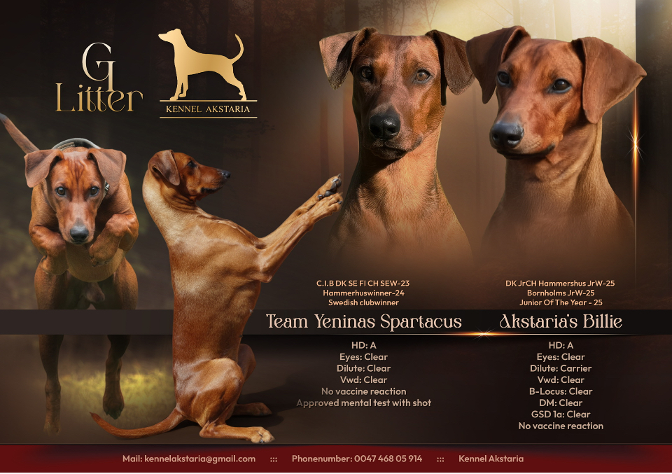 (Forventes både røde og black and tan valper i G- og H-kullet) (Forventes kun Black and tan valper i I-kullet)